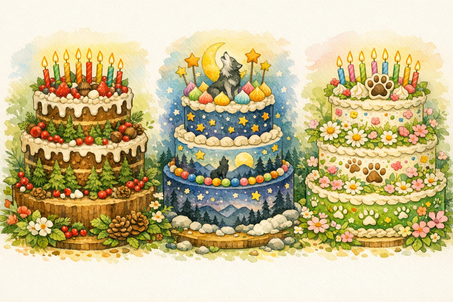 Kieran also loves music, art and nature, so let's bring the best of the best to his celebration! And, yes, many cakes - Wolfie has a sweet tooth!