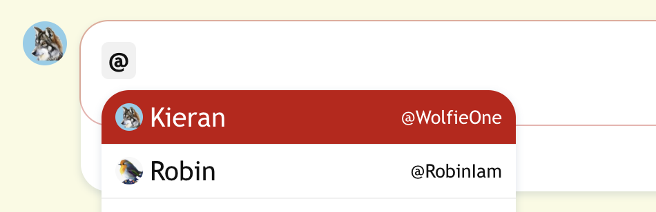 You can click/tap on the one you want, or start typing the username—not the display name—to narrow down the options if there is a long list of users shown.