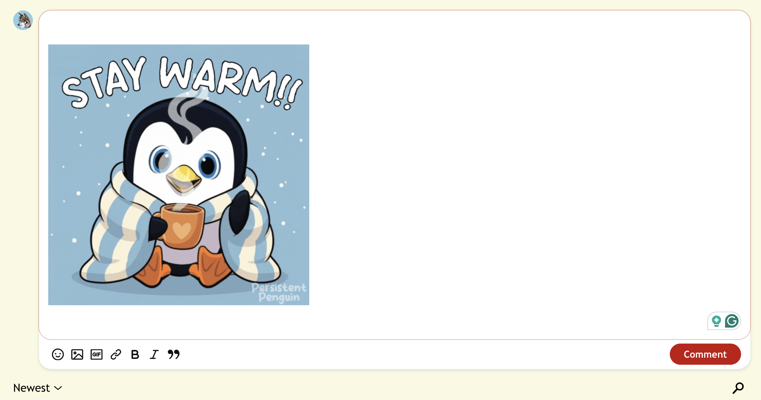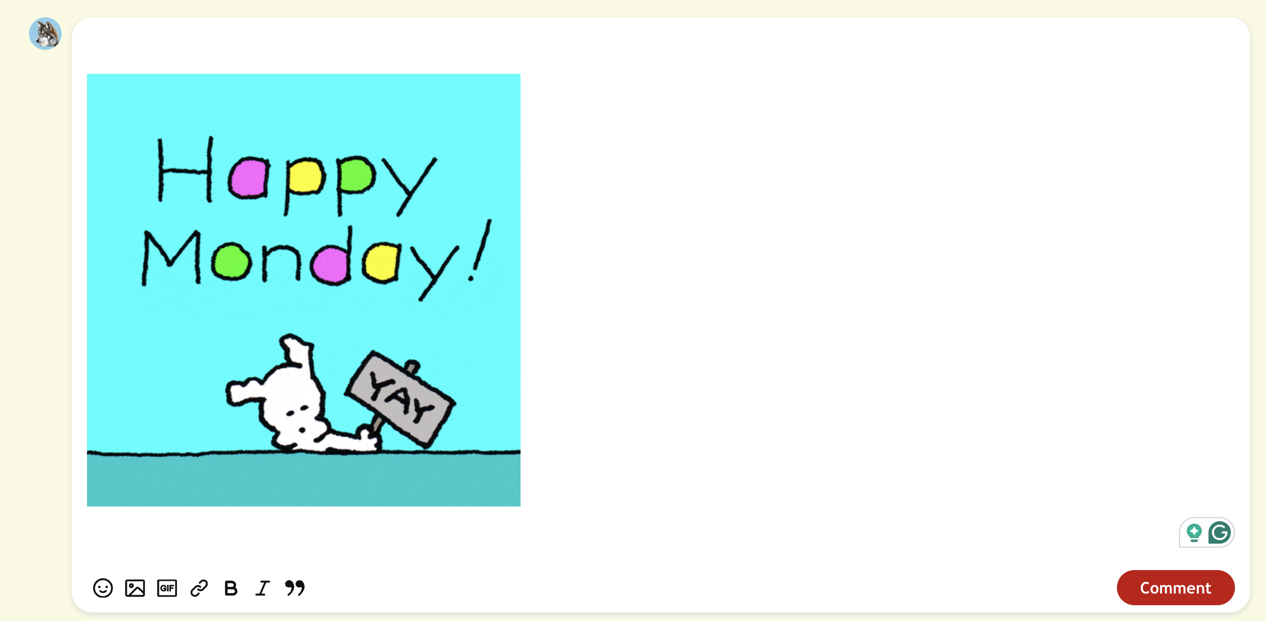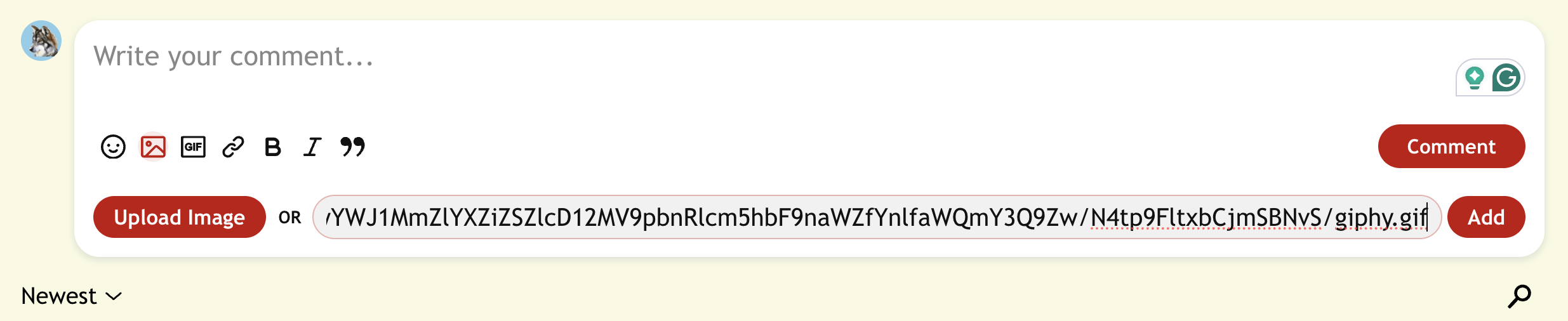 The image/GIF will preview in the comment box, and you can then post the comment.