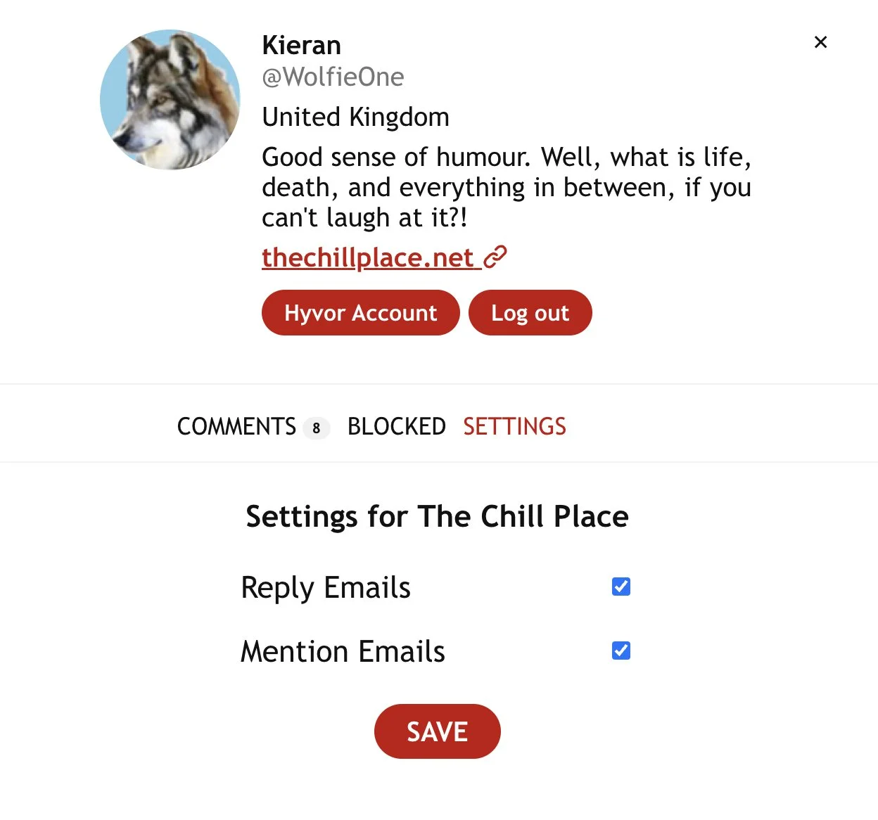 And Settings is where you can manage the email notifications for each Hyvor-enabled site.