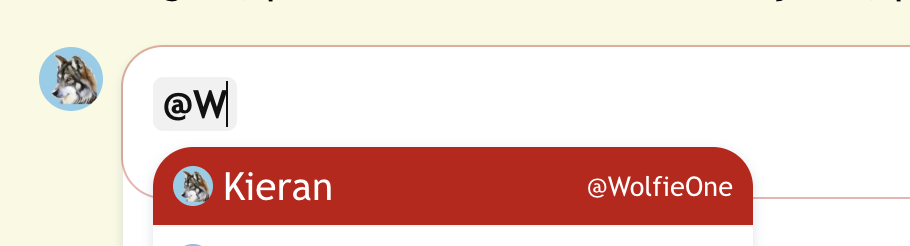 You can click/tap on the one you want, or start typing the @username—not the display name—to narrow down the options if there is a long list of users shown.