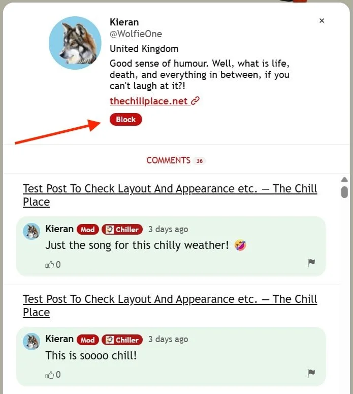 Their profile will open in a pop-up, and you will see the comments that they have made on this site, and only on this site.