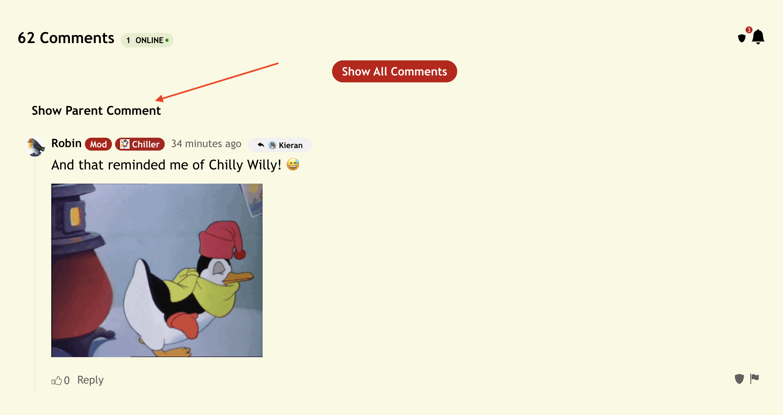 If the comment is a reply to another, and you want to see the comment it was a reply to, click/tap on “Show parent comment”.
